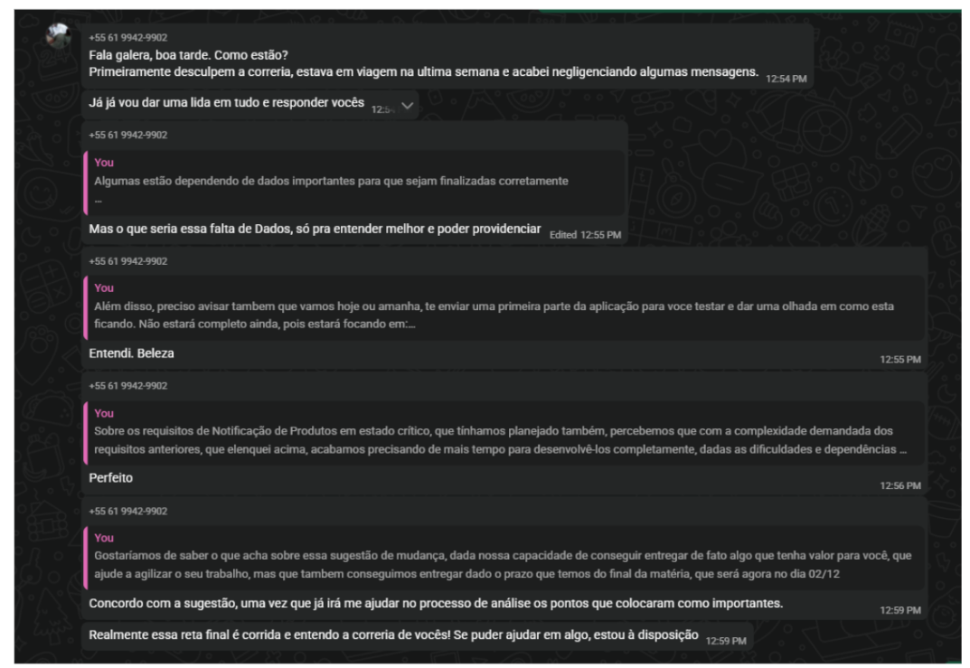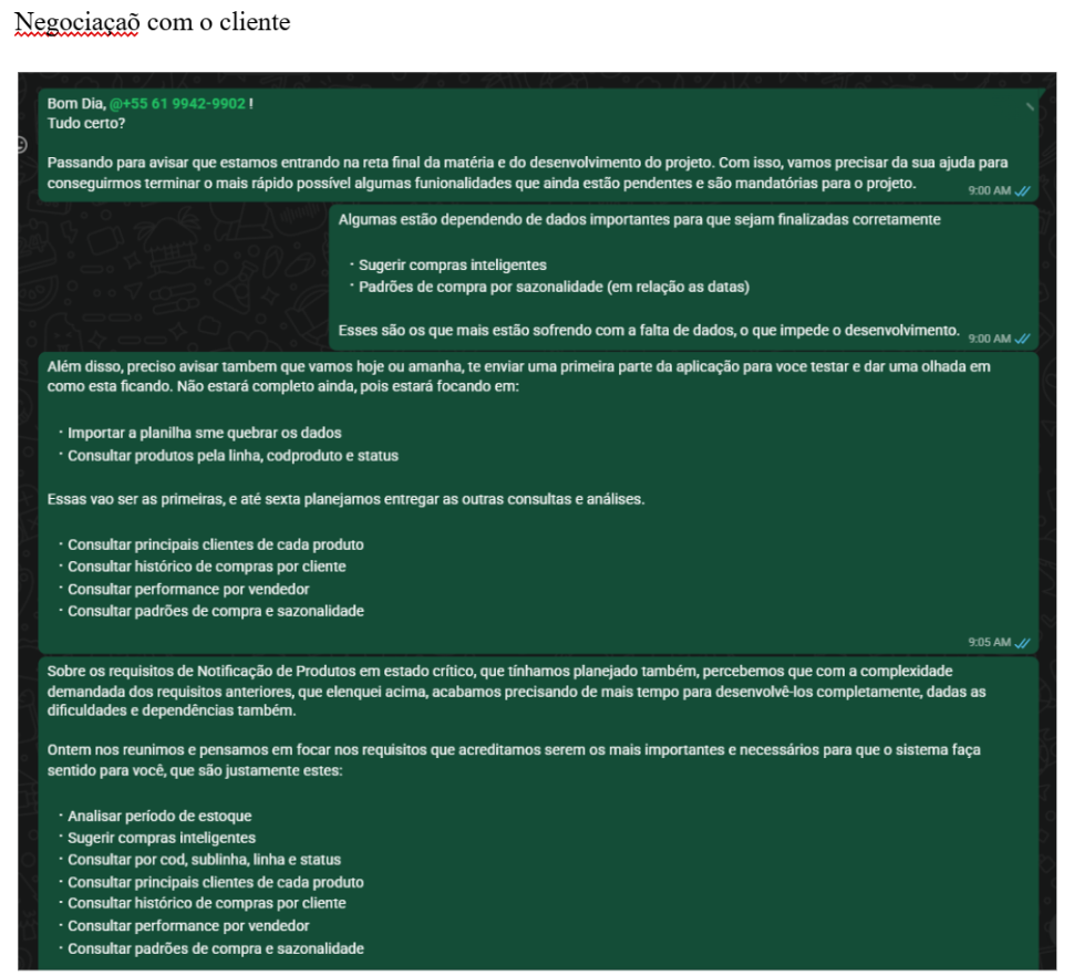 Conversa com o cliente para validar a mudança de escopo do MVP